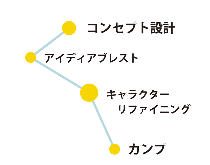 ビジュアルのみならず、キャラクターの性格、背景となるストーリーの作成など、愛されるキャラクターにするための世界観の設定から、丁寧に作り込みます。