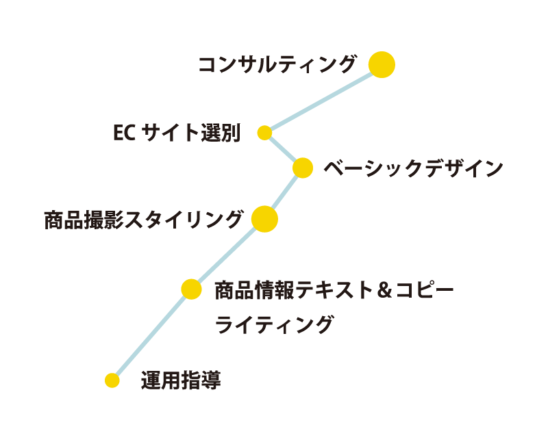 ECサイトのサービスを利用したオンラインショップの構築のお手伝いができます。